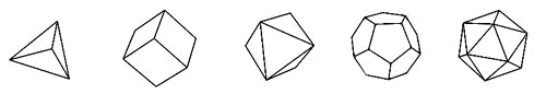 are the Tetrahedron, Cube, Octahedron, Dodecahedron, and Icosahedron,