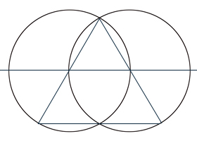 Here we see a horizon drawn through the centers of both circles. As above, so below. ![]() This division yields the intersecting points seen above. When these points are connected, they result in an equilateral triangle. This page is currently under construction, and will continue to be developed. |